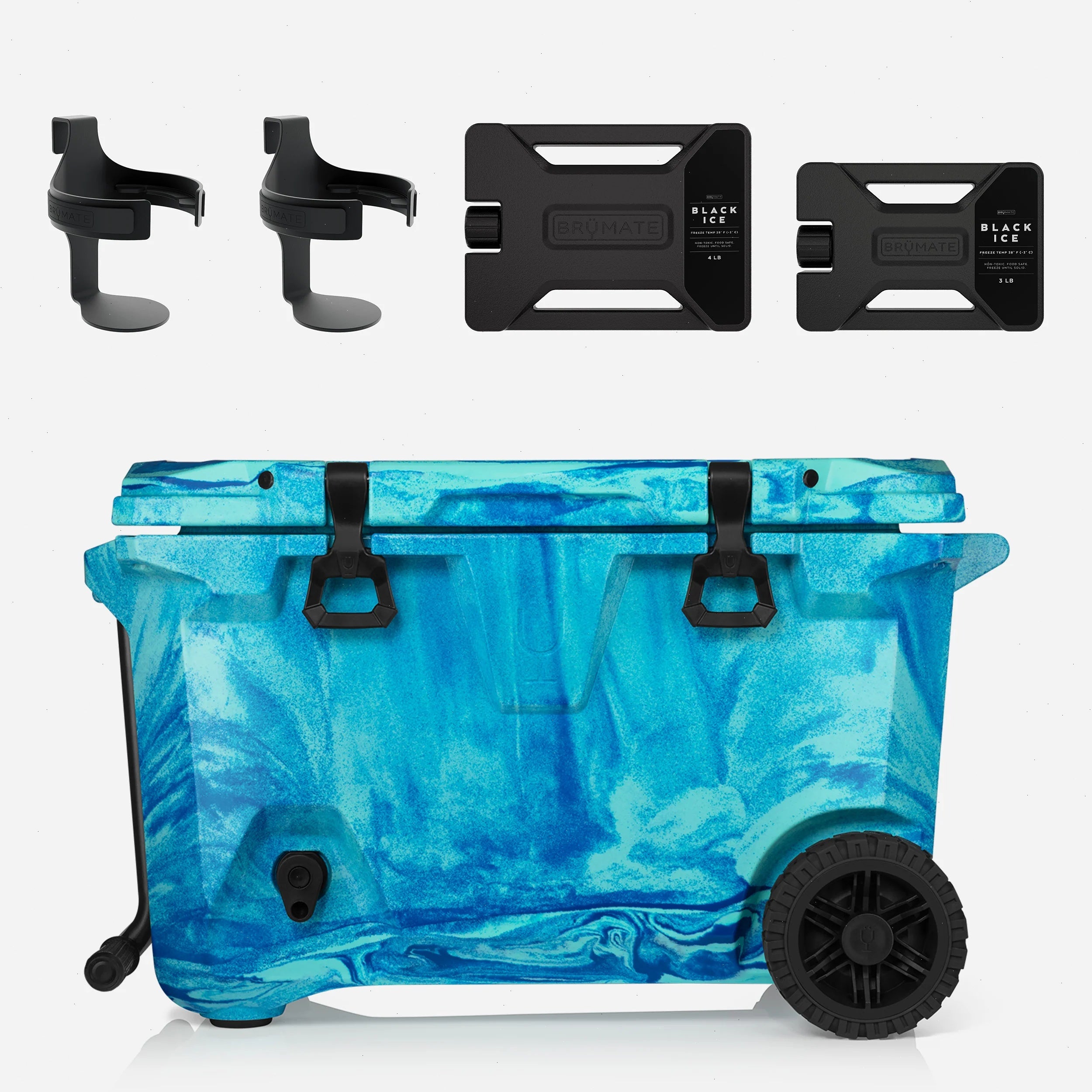 The BrüTank is the most innovative cooler ever made; featuring all-terrain wheels, our self-tapping removable drink tank, a built-in tap, bottle opener and more. Save with a bundle including 2 cup holders and 2 ice packs (3 and 4 lbs). Color and pattern may vary due to the process that we use to create unique swirls on each product. Not available for shipping outside the U.S. Cooler will ship separately from the accessories. Excluded from all promotions and discount codes.